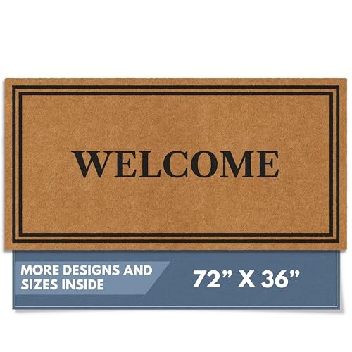 Check Price on Amazon →This Barnyard Designs coir doormat stands out for its oversized 72×36-inch footprint, crafted entirely from 100% natural coconut coir fibers with a non-slip backing. The coarse bristle texture efficiently scrapes mud and debris from shoes, while the bold “Welcome” lettering in a classic border design adds a decorative touch. The heavy-duty backing ensures stability, reducing slips and movement even in high-traffic areas. Ideal for grand double-door entrances, porches, or outdoor patios, this mat suits homeowners seeking both functionality and style. Its natural coir construction makes it best suited for covered entryways or areas with limited direct rain exposure to prevent staining from moisture-induced dye release.