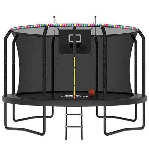 - #514FT Outdoor Trampoline with Basketball Hoop and LED Lights,…Check Price